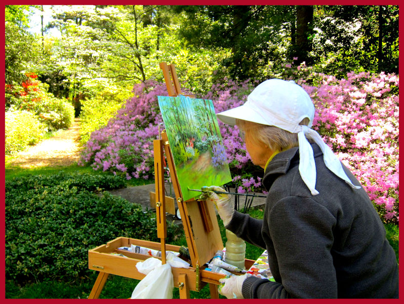 Painting the azaleas at McCrillis Gardens in Betnesda, Maryland.
